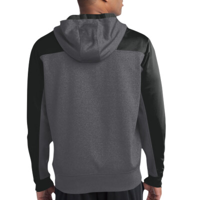Colorblocking on the hood, shoulders and arms provide striking contrast against the rich, heather body color of this sweat-wicking essential. Double-knit construction, a full athletic cut and enduring color means it will quickly become a go-to choice for time in the gym or hanging with friends.